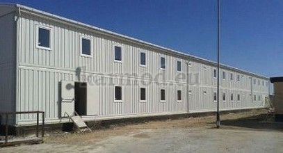 The 1720 m² work site building was installed in Aktua town on the coast of Caspian sea. The building was delivered in 2013 containing work site offices for management and workers.
